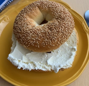 Your bagel with cream cheese is ready! Enjoy immediately for the best flavor and texture.