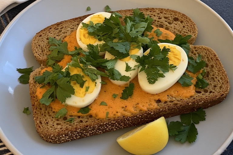 Egg salad option: Chop boiled eggs and mix with a bit of mayo and herbs, then spread on toast.