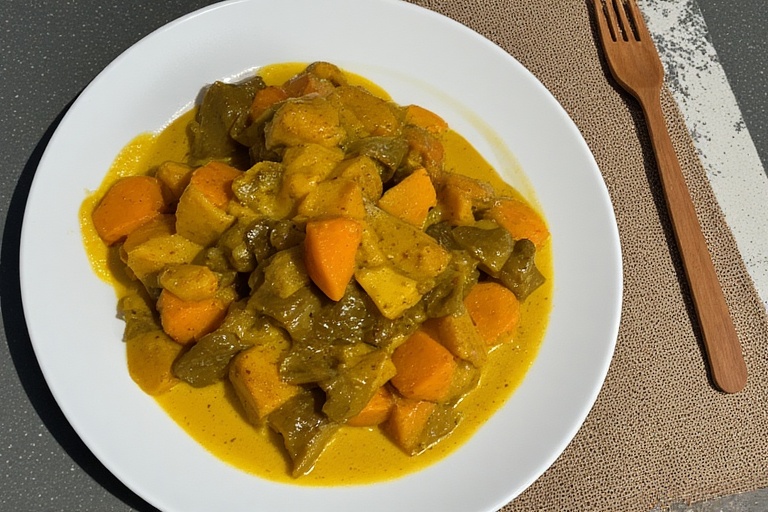 A: Absolutely! Use tofu or tempeh for protein, extra carrots, potatoes, spinach, and a little more coconut milk.